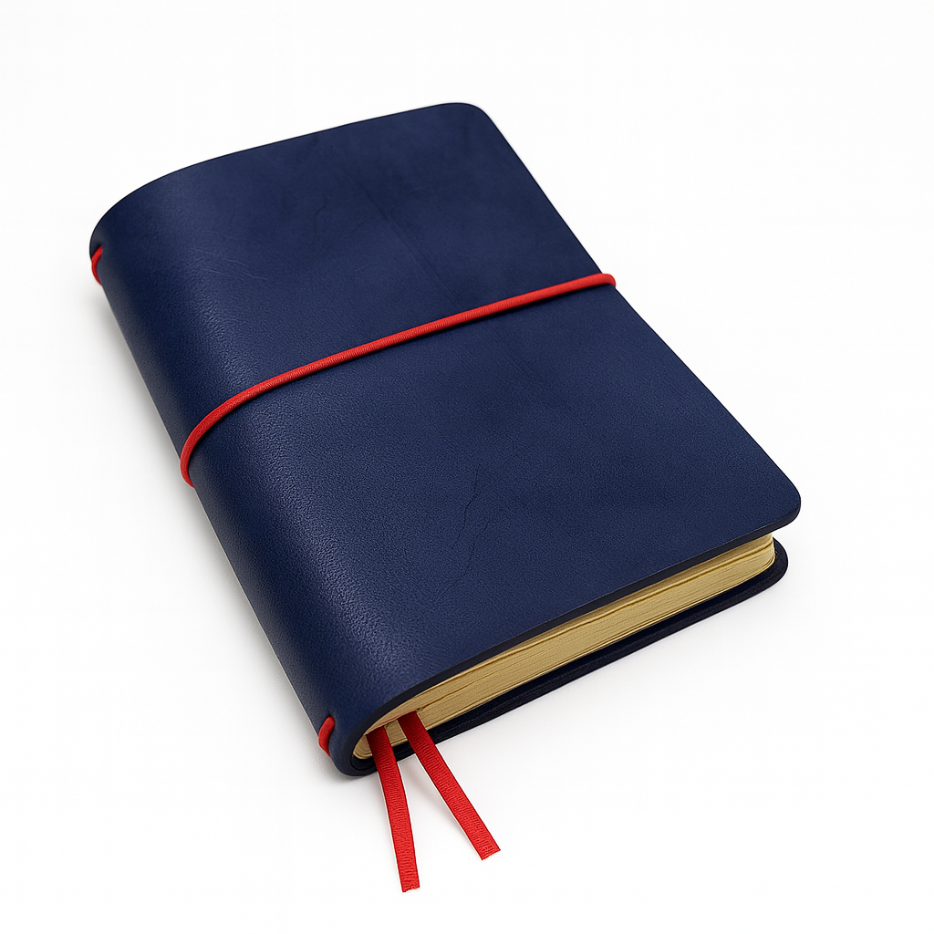 Úvod » FLEXI "M" (17,4cm x 13cm) 2026 » FLEXI ("M")-farba: ROYAL BLUE s červenými doplnkami - modrá; kožený zápisník - 2026, TO-DO, čisté strany